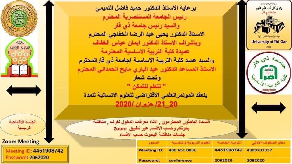 الجامعة المستنصرية الصفحة الرئيسية المستنصرية تقيم مؤتمرها الإفتراضي للعلوم الإنسانية بالتعاون مع جامعة ذي قار