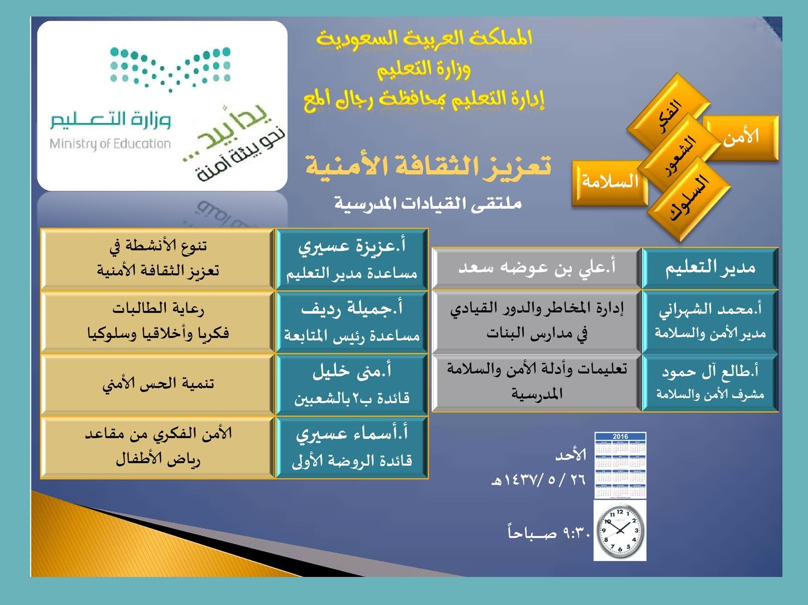 إنجازات الأمن والسلامة المدرسية بعنيزة الإدارة العامة للأمن والسلامة المدرسية