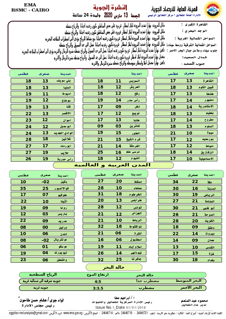 حالة الطقس غدا الجمعة 13 مارس 2020 بيان من هيئة الأرصاد الجوية شبابيك