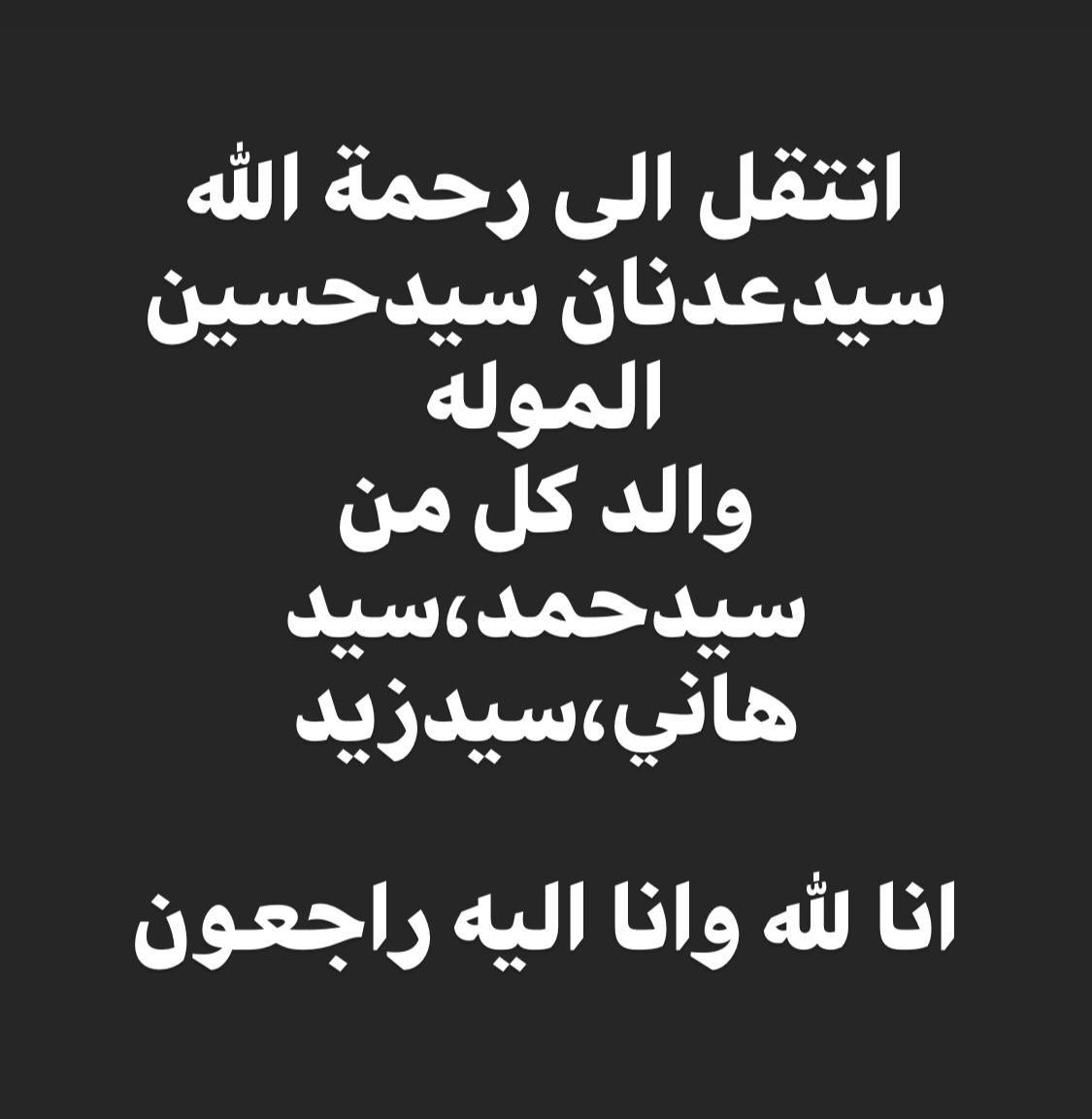فجر السعيد على تويتر إنا لله وإنا اليه راجعون خالص العزاء للخاله الغاليه حبيبتي وحبية الكل السيده مكيه الموله ام حمد الموله في وفاة زوجها سيد عدنان الموله والعزاء موصول