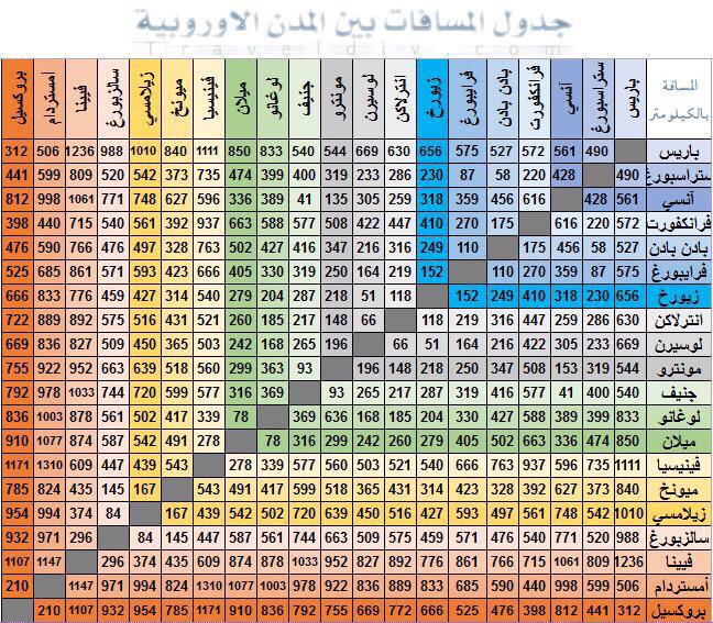 Travelzad زاد المسافر On Twitter جداول المسافات بين أهم الارياف والمدن الاوروبية Http T Co Opedweg68f جدول مسافات الدول الاوروبية زاد المسافر Http T Co Ptyzmx4ubx