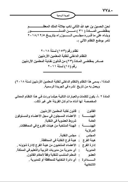 إرادة ملكية بالنظام الداخلي لنقابة المعلمين الاردنيين تفاصيل
