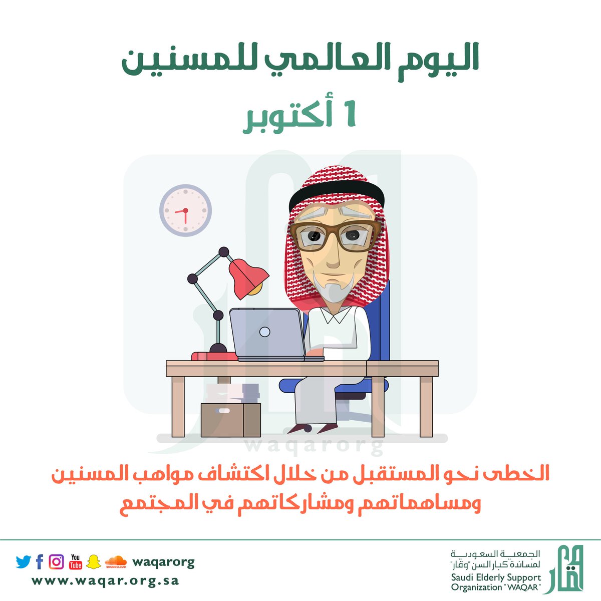 جمعية وقار Su Twitter يوافق اليوم ١ أكتوبر اليوم العالمي للمسنين تحت شعار الخطى نحو المستقبل من خلال اكتشاف مواهب المسنين ومساهماتهم في المجتمع وقار Https T Co 3ertymeq2y