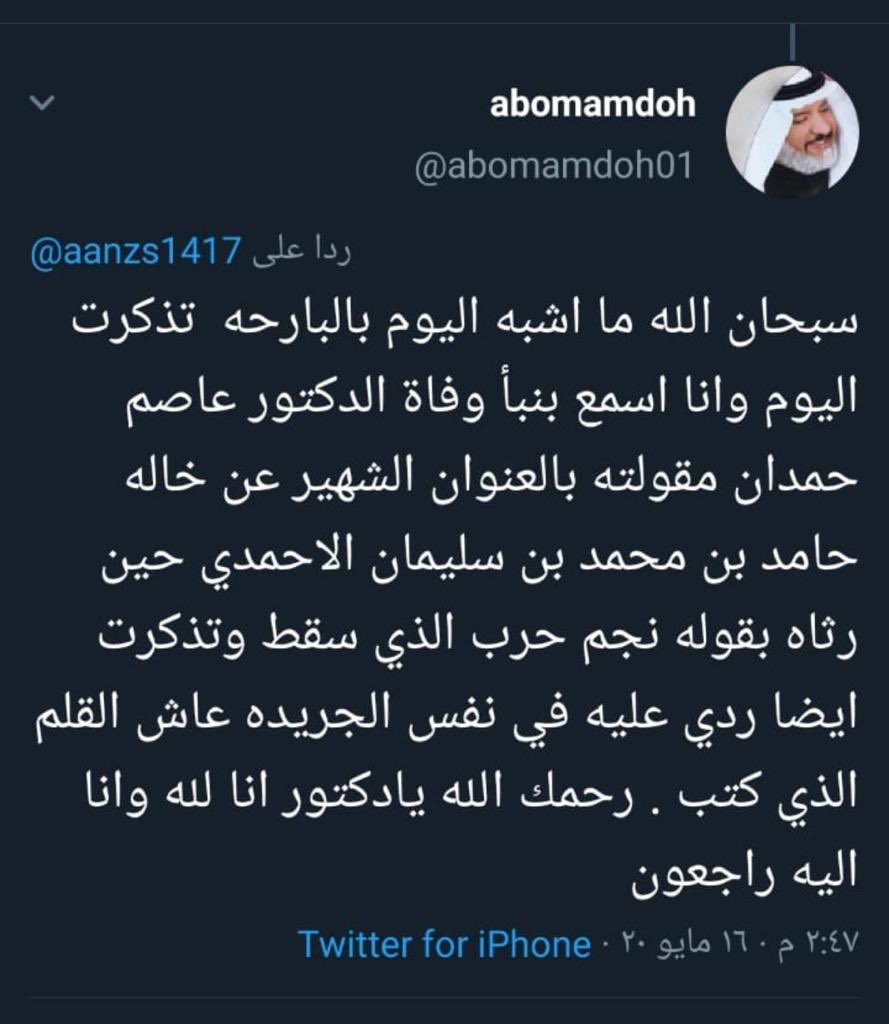 خالد جاسم Sur Twitter انا لله وانا اليه راجعون الله يرحمه ويغفر له ويسكنه فسيح جناته